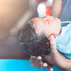 De eerste maanden na de geboorte is het niet nodig de haartjes van je baby met shampoo te wassen. Vanaf het moment dat je baby meer haar begint te krijgen mag je starten met babyshampoo.